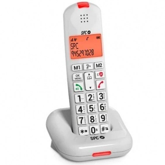 Teléfono inalámbrico ideal para personas mayores. Con 5 funciones antispam, botones grandes, pantalla y teclas retroiluminadas, 2 memorias directas y volumen extra en auricular. Es compatible con audífonos, incluye modo mute y permite bloquear hasta 100 números.