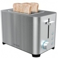 Tostadora de pan YummyToast Double de doble ranura corta de 850 W de potencia y acabados en acero inoxidable. Incluye soporte para panecillos, bandeja recogemigas y función para descongelar y recalentar.