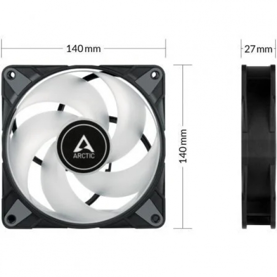 El ruido de funcionamiento del nuevo motor ARCTIC es prácticamente imperceptible, incluso a baja velocidad. Además, el P14 PWM PST A-RGB cuenta con superficies de contacto de goma, lo que minimiza las vibraciones audibles.