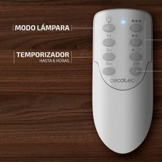 Cómodo y sencillo control gracias a su mando a distancia, desde el cual podrás controlar seleccionar las funciones del ventilador. Su temporizador permite seleccionar 1, 4 u 8 horas de funcionamiento, tras el cual el ventilador se apagará.